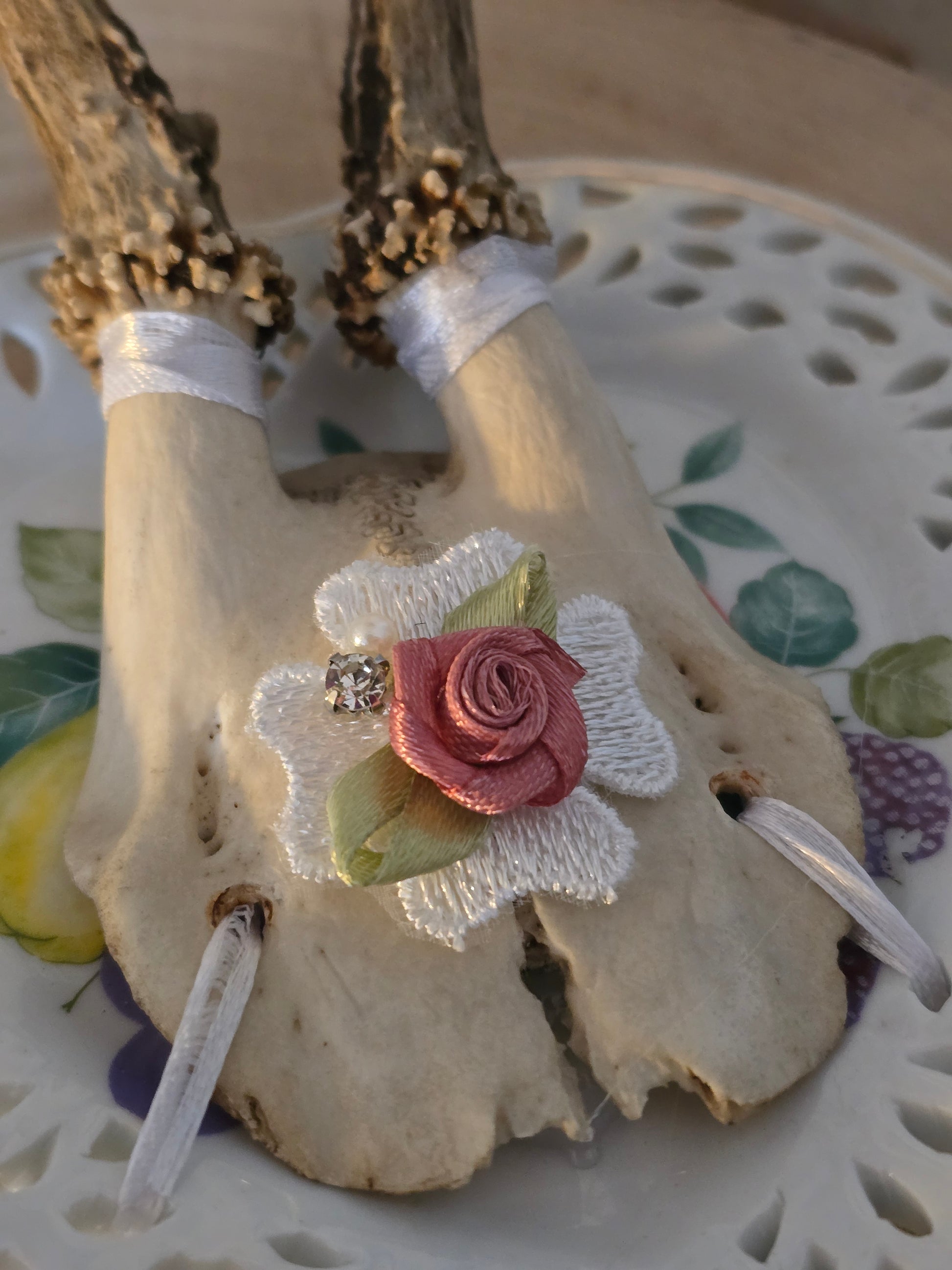 Echtes Geweih auf Vintage Teller