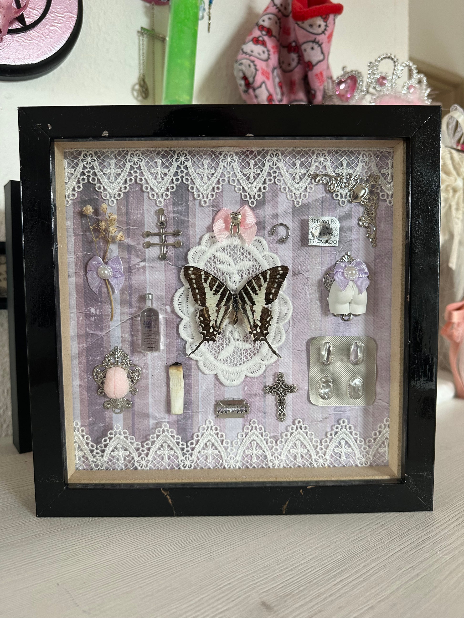Rahmen „Girl Dinner No. 13“ mit echtem Schmetterling