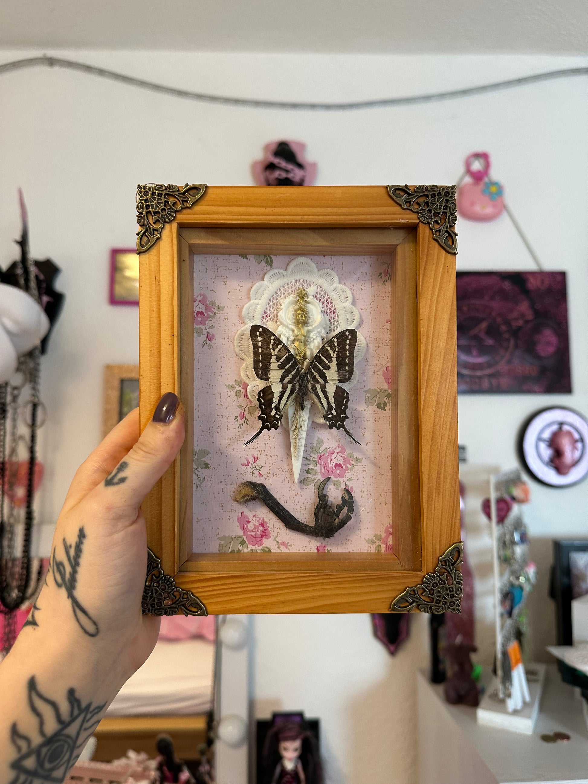 Rahmen mit echtem Schmetterling und Krähenfuß