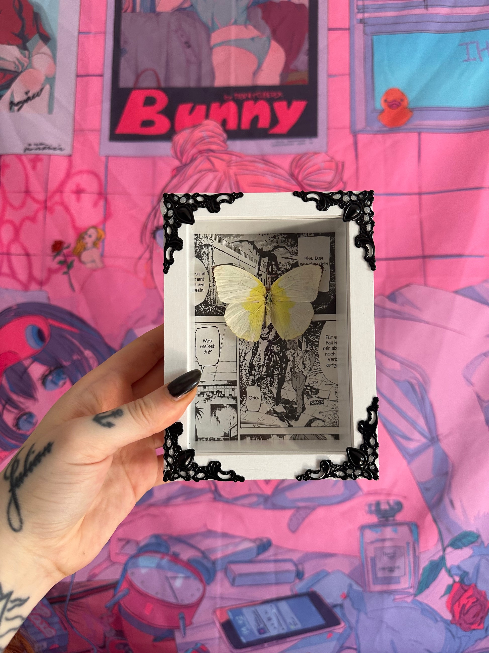 Rahmen „Death Note No.1“ mit echtem Schmetterling
